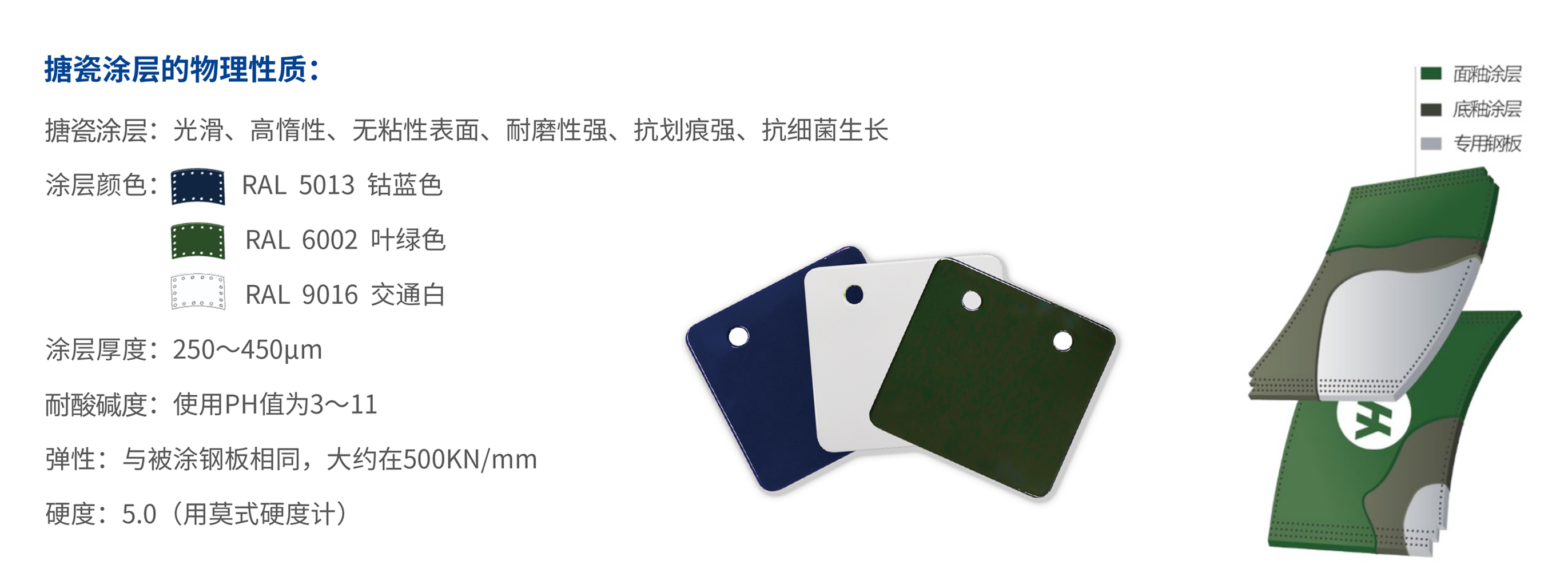搪瓷钢板采用的钢板基材,是特种高强度搪瓷专用钢板,其力学性能(屈服强度、抗拉强度、延伸率)较普通碳钢板有显著提高。